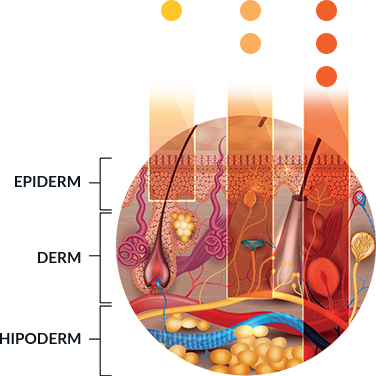 UVC este în cea mai mare parte absorbită de atmosfera pământului, dar razele UVA și UVB pot pătrunde în pielea neprotejată - UVB în epidermă, stratul superior al pielii, în timp ce UVA intră mai adânc.